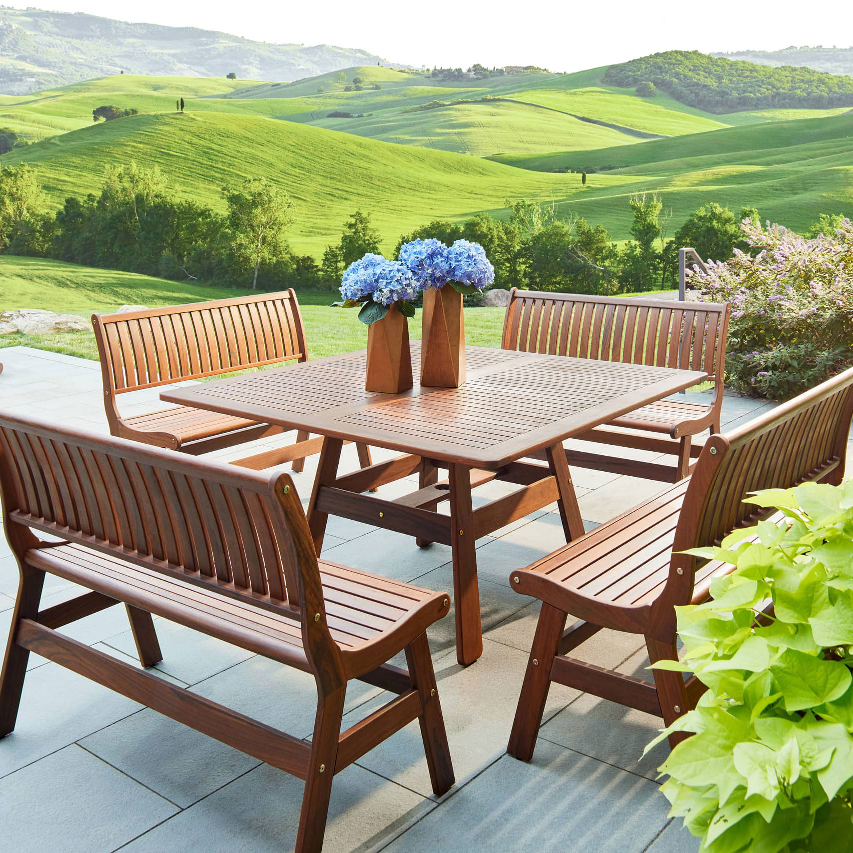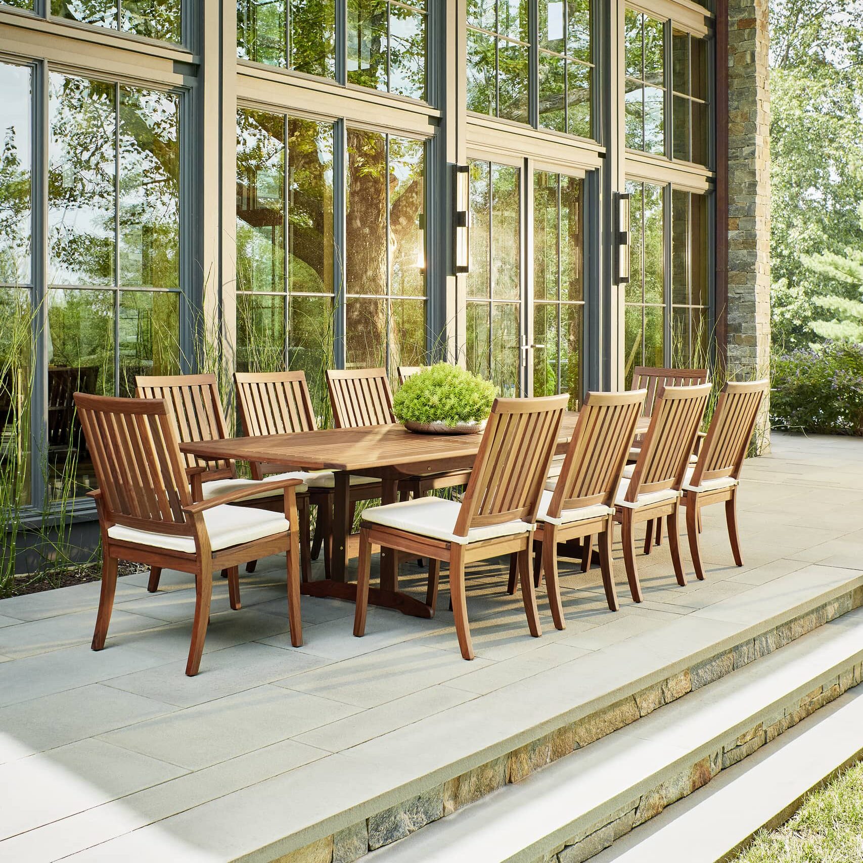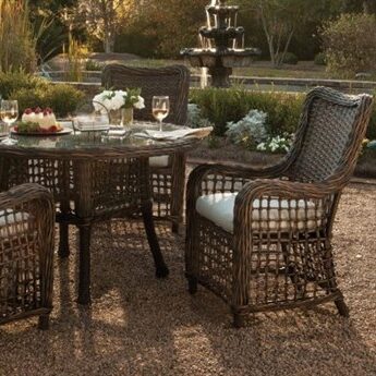 Similar to Berlin Gardens, Polywood resin dining sets are low-maintenance, lightweight, and durable. But, stylistically, resin can replicate the look and feel of other natural textures. Like the best teak furniture, resin d ining sets are insect-resistant and can fend off mold and mildew damage with regular cleaning. If windy conditions are a concern, resin’s lightweight build makes for easy storage indoors while you await calmer conditions.