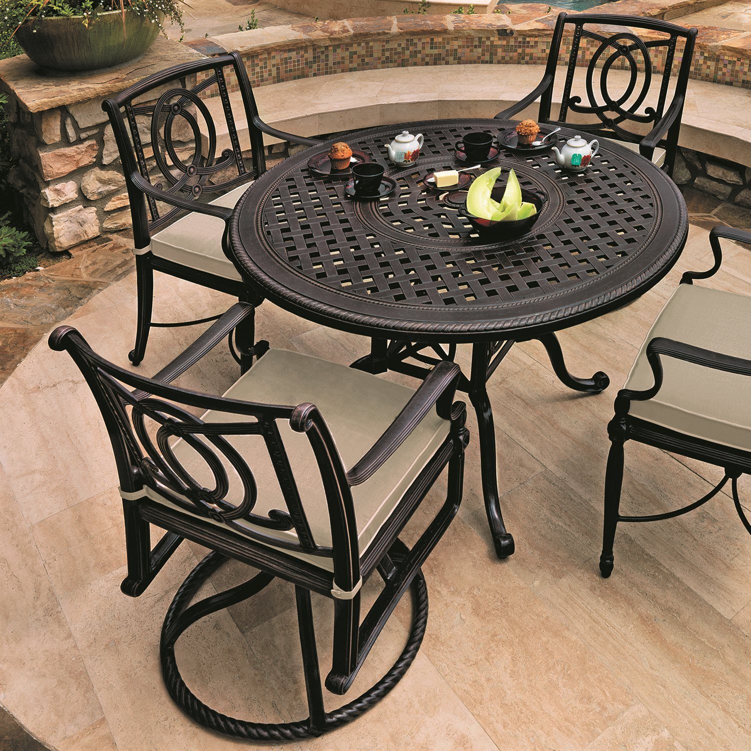With so many options to choose from, it can seem daunting to know which direction to go when picking the perfect dining set. Your outdoor dining set should be a testament to your style and the aesthetic you want to escape to. One of the chief concerns when it comes to outdoor dining sets is finding a set that you can depend on to last, not just season after season, but year after year. Thankfully, We carry dining sets in various materials to ensure that choosing between durability and details is never in doubt.