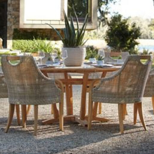Teak can provide a timeless wood look to any space, and Royal Teak may be the best to do it. Famed for durability, teak is also naturally insect-resistant, something to consider when you’re sharing meals with Mother Nature. It will require a bit of maintenance every year to upkeep; however, the juice is well worth the squeeze. With proper maintenance these sets can last season after season and allow you to build memories with family and friends.