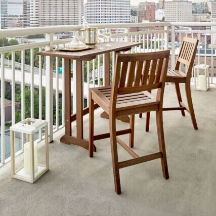 How much space you have available will determine your table’s size. This affects how many chairs you can fit and the shape of the table itself. For smaller spaces, a circular table easily maximizes the comfort for two to four people. For spaces like balconies, a bar-height table can be the perfect solution for providing a place to sit and enjoy the view, as well as your meal.