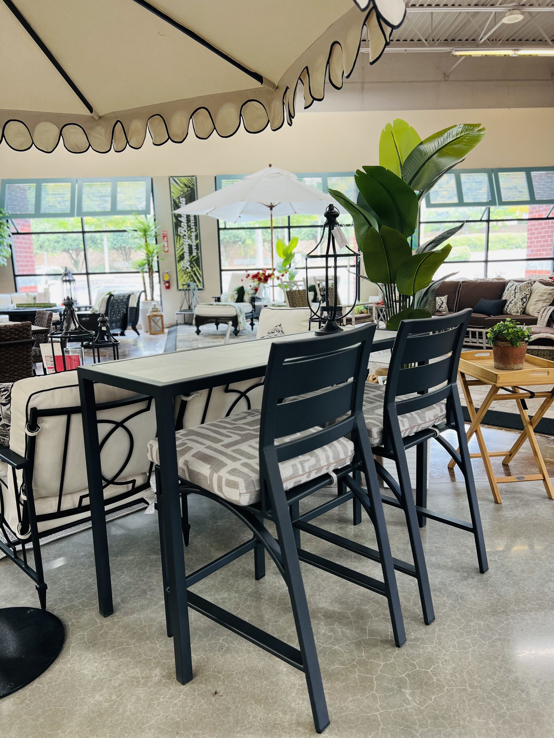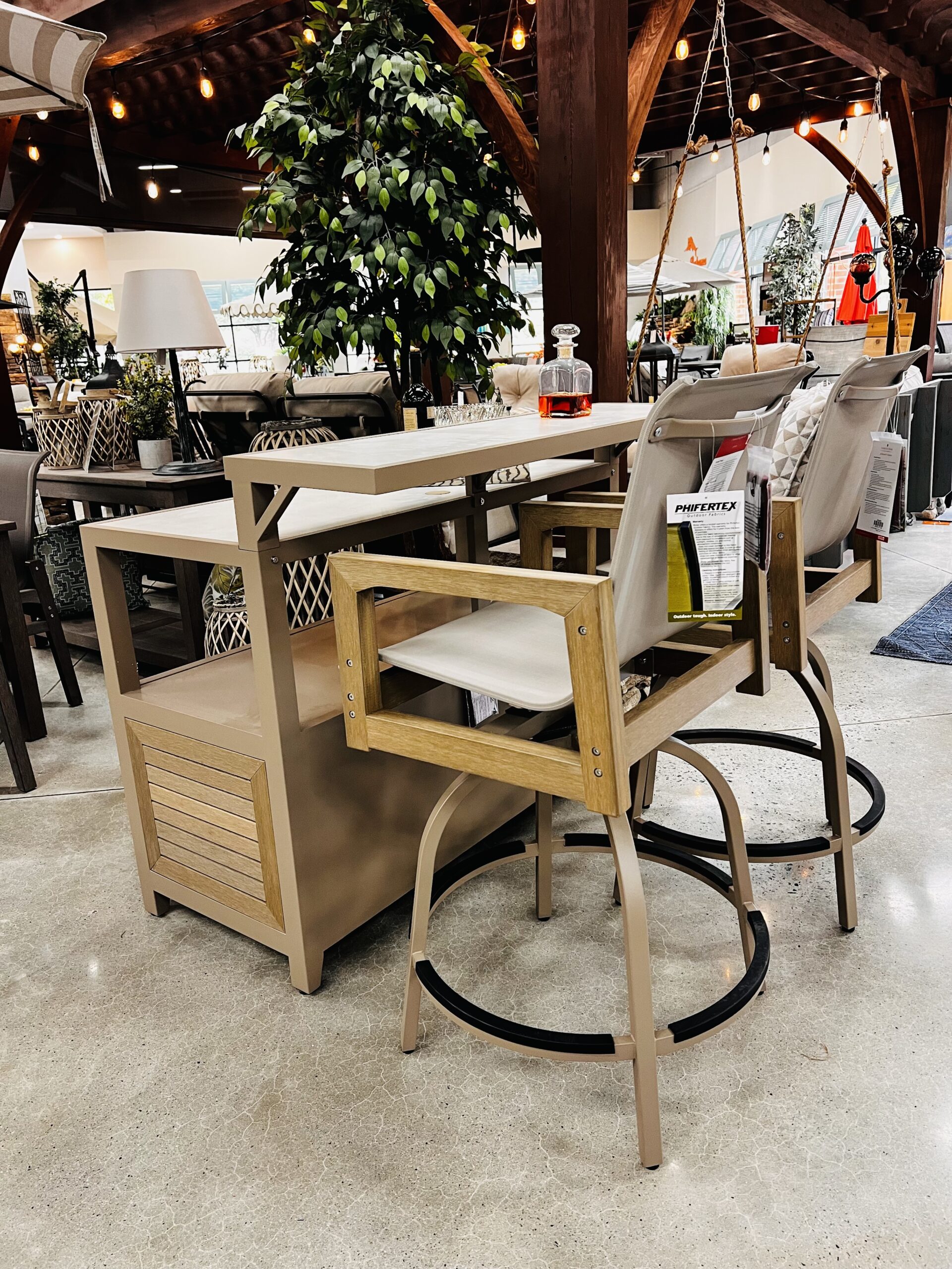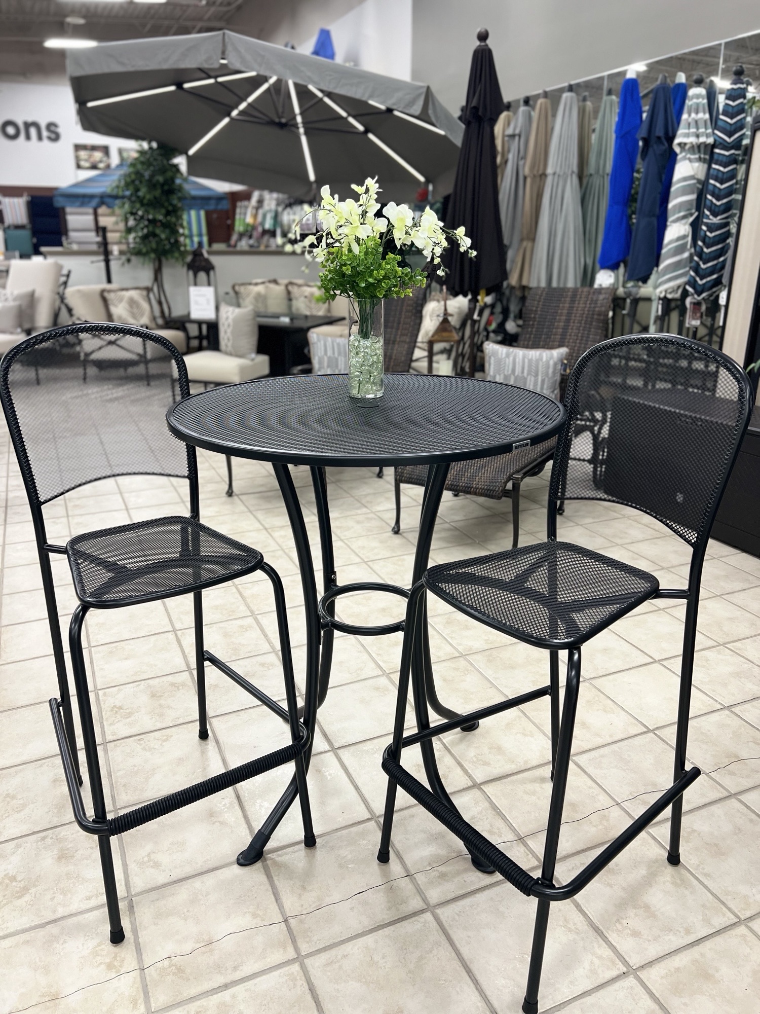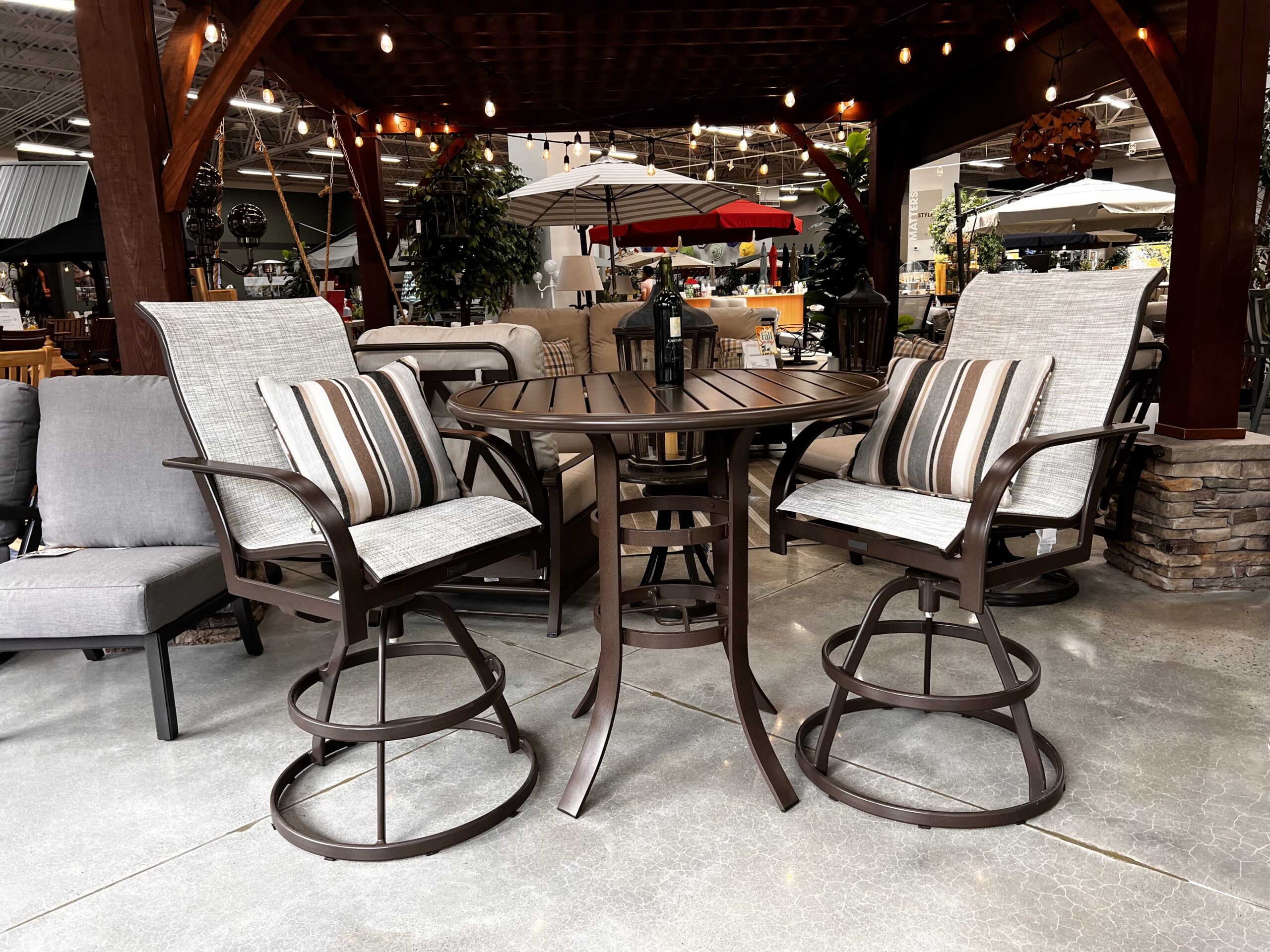 Three-Piece Bar Set includes 42" Aluminum Bar Table with Two Key West Swivel Bar Stools