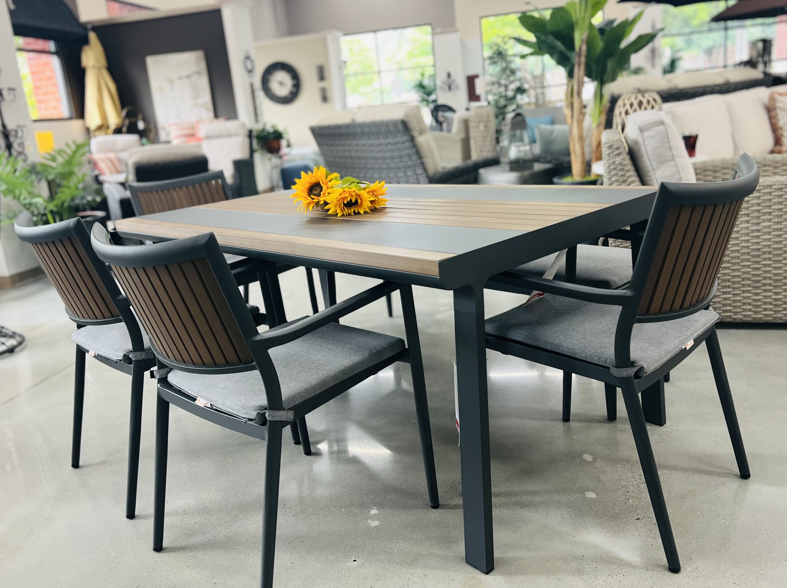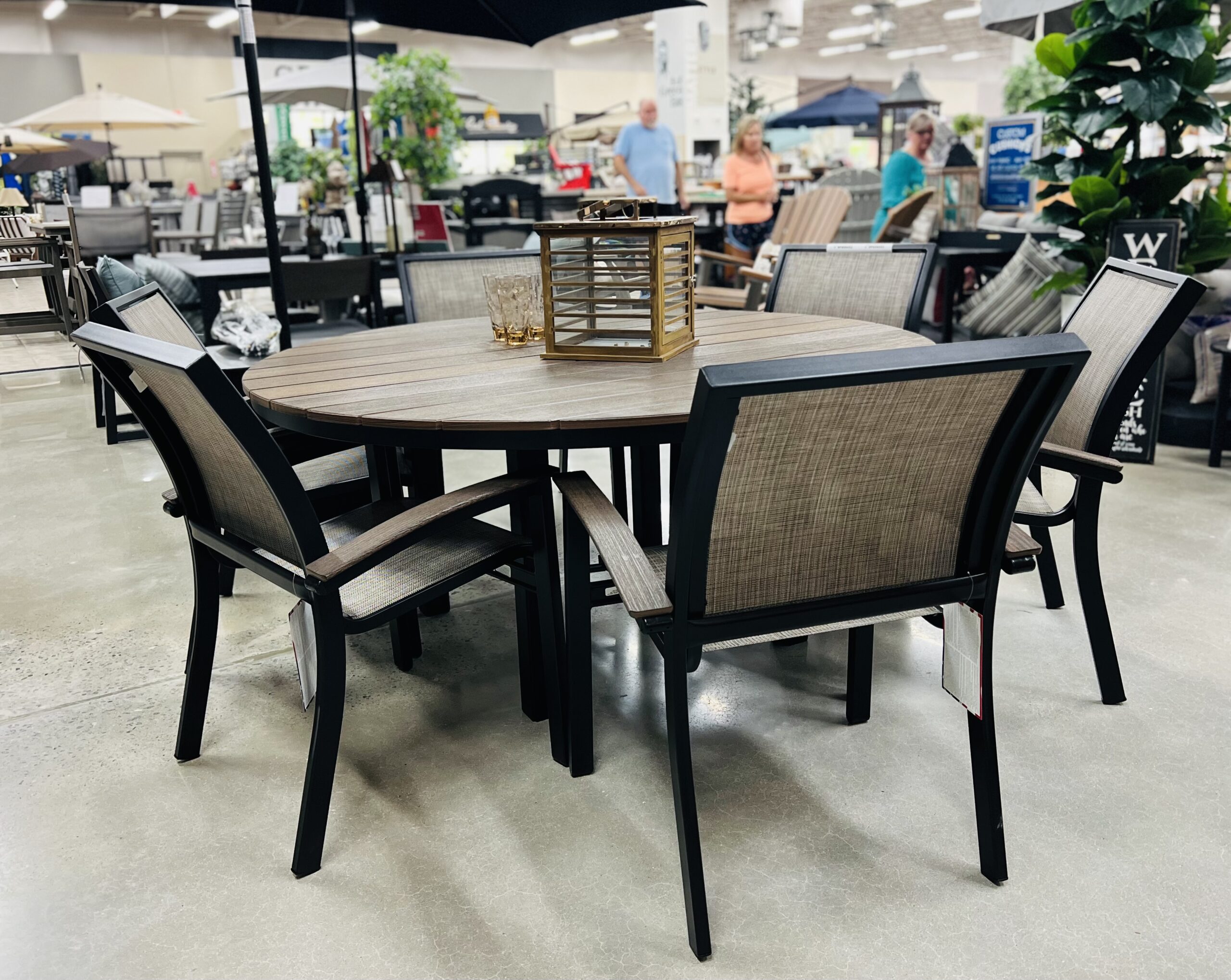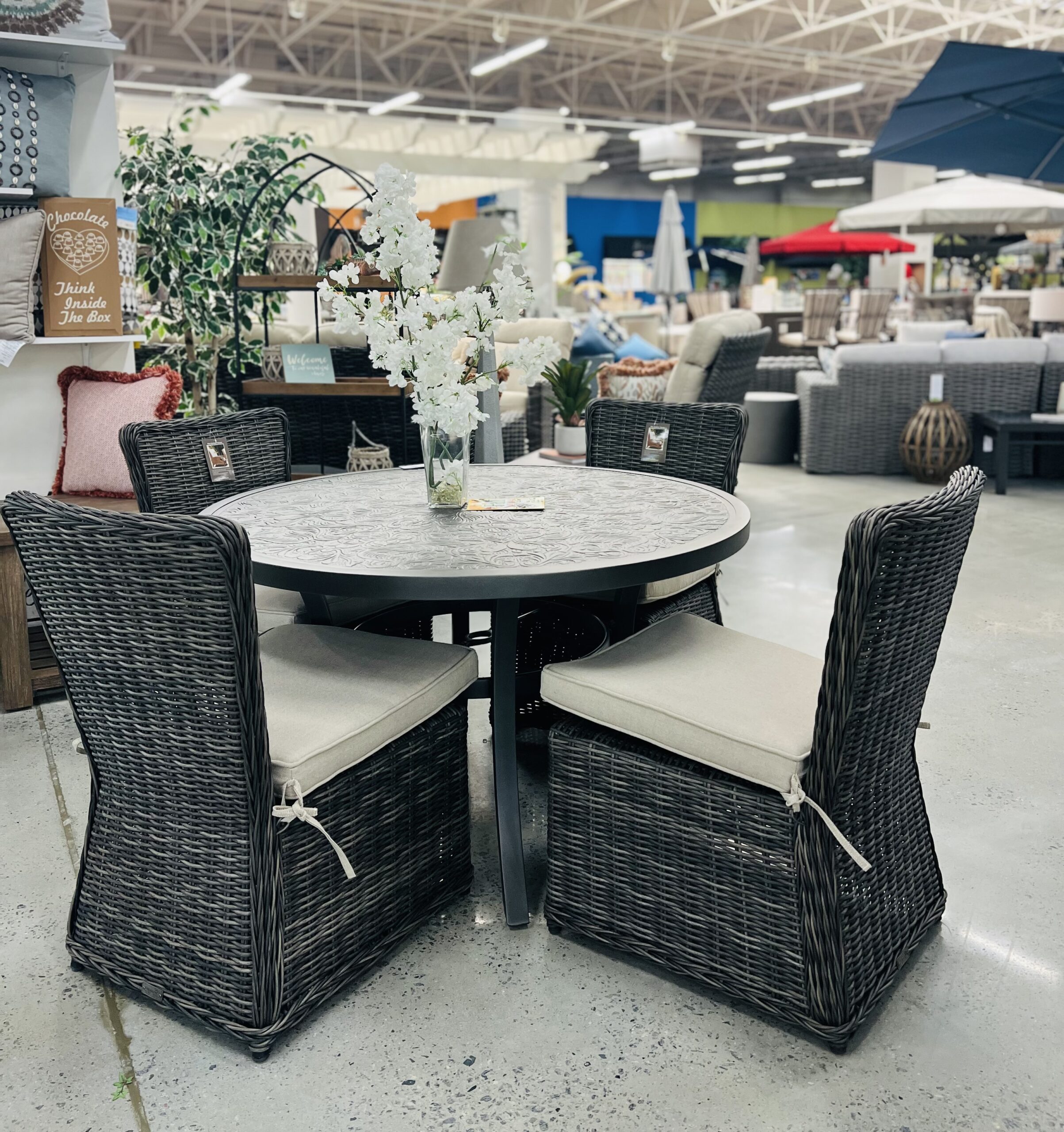 Greenville Dining includes 54" Cast Aluminum Dining Table with Four Woven Side Chairs (Cushions Included!)