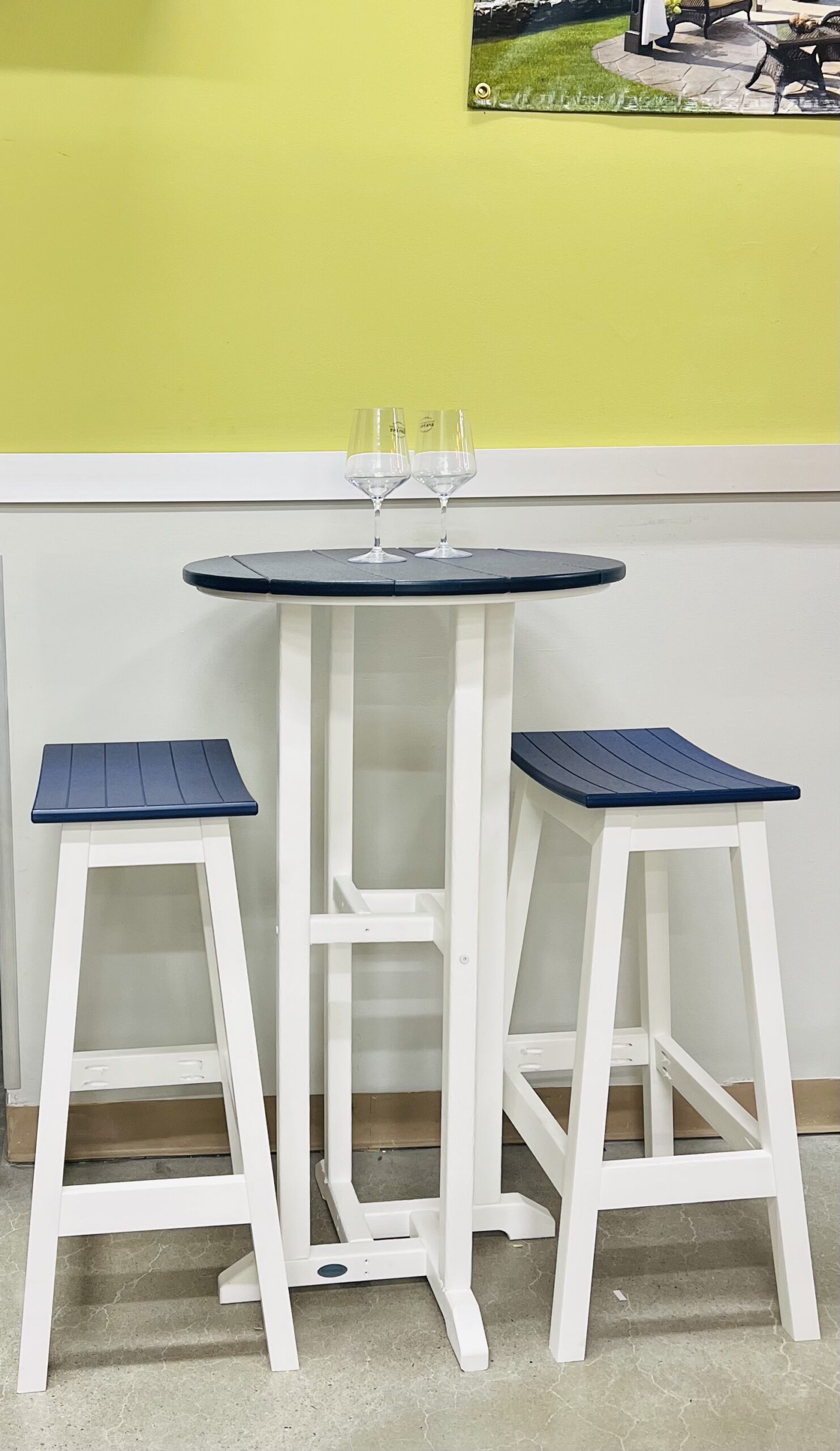 Three-Piece Set includes 24" Bar Table and two Saddle Barstools